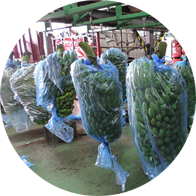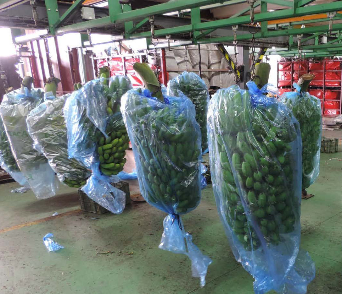 Bolsa de polietileno (PEBD) color transparente con perforaciones utilizado para cubrir los gajos y manitas de plátanos cuando se empacan en cajas de cartón para su comercialización. Fabricado con resina virgen sus atributos son proteger la fruta de ralladuras por las cajas y protegerlas de la temperatura ya que son refrigeradas para su transportación.